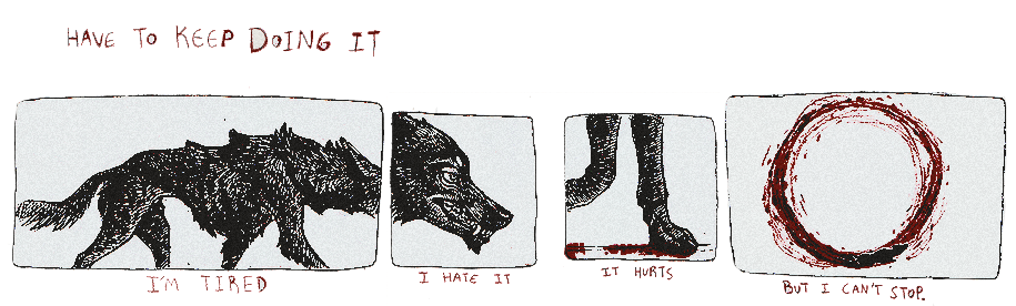 the wolf; i will often refer to his wolf almost as though it's a separate entity from klaus himself. this is mostly true, though he certainly has a level of control of the creature. i don't really know how to describe it other than it's as though he literally has a wolf living inside him that's always trying to get out; this will lead to outbursts when he's frustrated / angry, and he will often growl during these moments, along with perhaps his claws and / or glowing eyes showing for a moment. this is klaus losing a bit of his grip on the metaphorical leash he has on the beast within, and elements of the animal coming through. his wolf is oddly protective of him, often fighting to the surface to defend or avenge him.